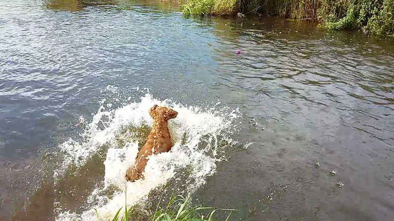 Pixel is a water baby and dives into the river with huge enthusiasm for any thrown item. Tick that off my list too!